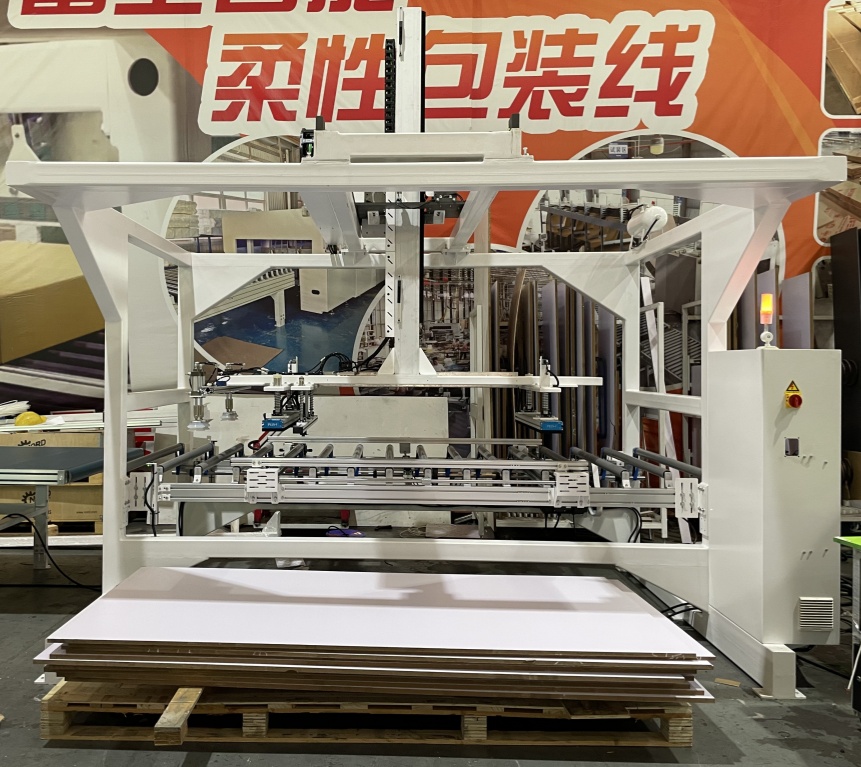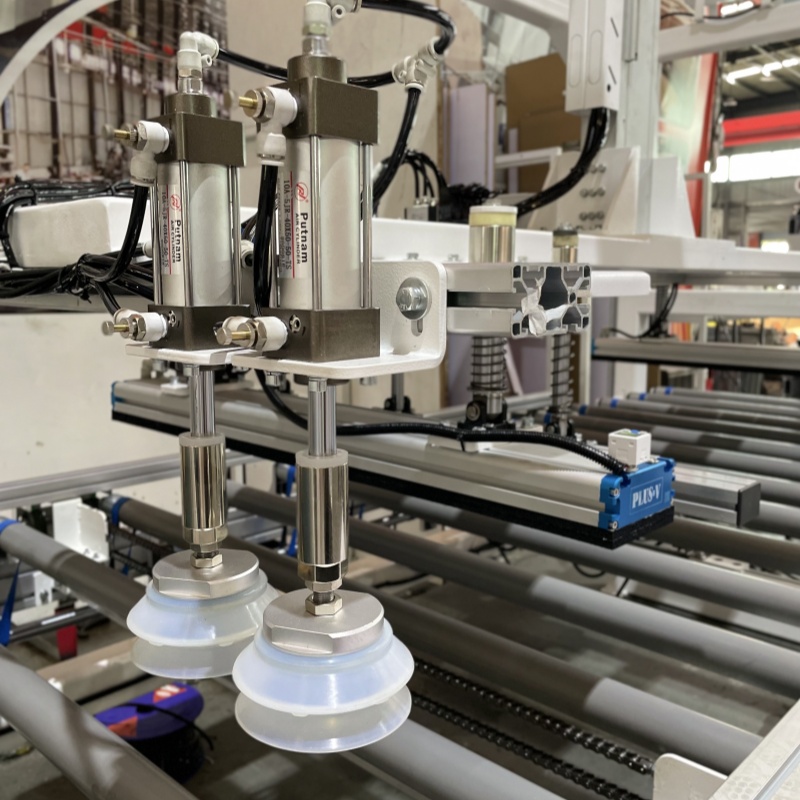 3. Detectarea anti-adeziune: un senzor de tensiune detectează sarcina. După ce a confirmat că este apucat doar un singur strat de panou, patru cupe mici de aspirație în formă de disc se atașează la un capăt al panoului